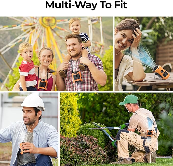 - Designed for Outdoor: Designed for most outdoor usage scenarios, personal waist fan has a anti-slip silicone cover, anti-drop and shock-proof, plus upgraded Manganese steel clamp offer strong grip force to keep it firmly, durable for outdoor use such as working at heights, construction sites, workshop works, etc. 50-60db meets outdoor minimal noise yet may become noticable in quiet environments, please think about it before using indoor