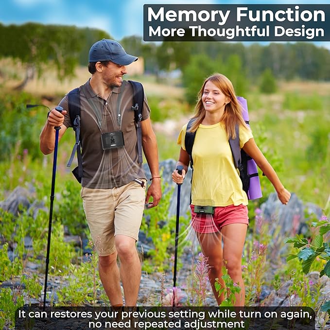 - Hassle free with Memory Setting: What makes a great waist fan? - it’s powerful and reliable. Our battery operated waist fan has an impressive 30,000-hour lifespan and is designed to keep you cool and comfortable for years to come. Its memory function lets you instantly enjoy your preferred breeze with a single touch