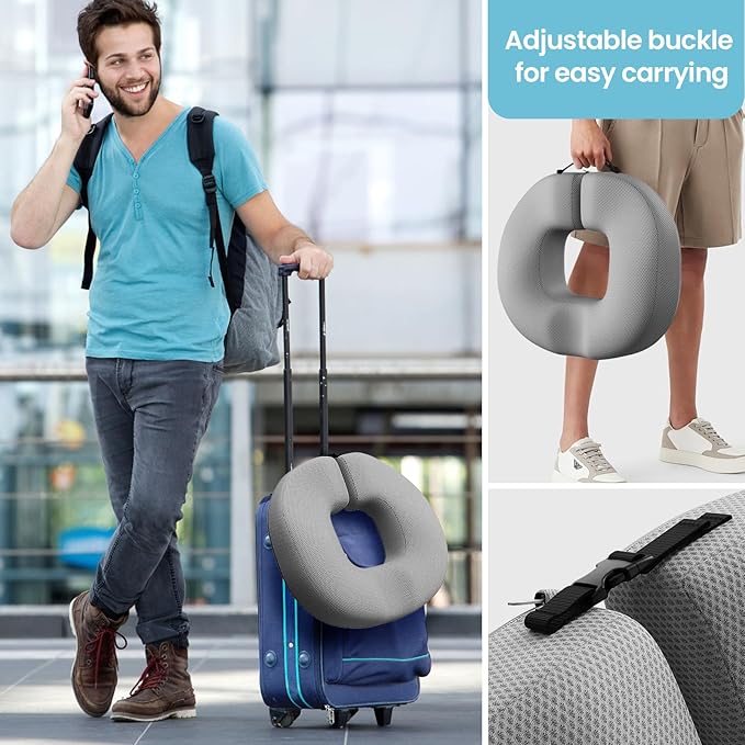 - 【Versatile Use】Enjoy comfort anywhere with our portable Donut Pillow! Suitable for any chair, including wheelchairs, office chairs, airplane seats, car seats, bleachers, dining chairs, yoga mats, and more. Its lightweight and portable design ensures you can take comfort with you wherever you go.