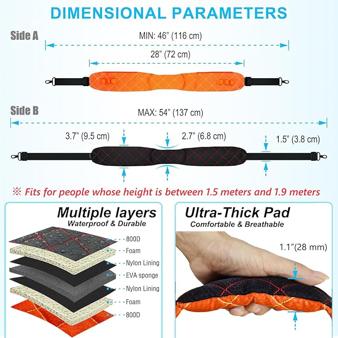 - Material and Size: The thick padded bag strap is made of high-density tear-resistant nylon and jacquard quilted design; Adjustable length from 45" to 54", the pad width of 3.8" and length of 28". Swivel hooks are enough for the weight of 30kg
