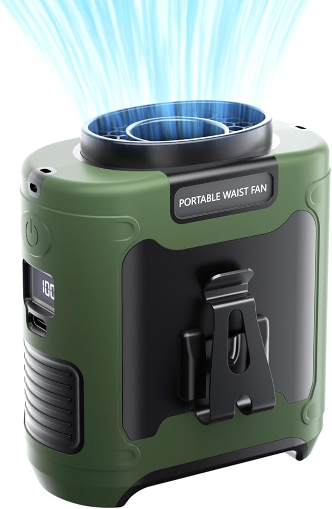 - Portable Waist Fan with 24-Hour Long Working Time: With a 10000mAh battery, this outdoor portable waist fan provides up to 24 hours of continuous cooling.