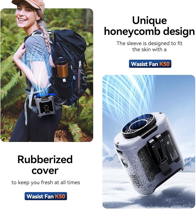 - Constructed from durable plastic and silicone materials, the shell of this waist fan ensures a secure grip and minimizes the risk of accidental falls, making it ideal for prolonged outdoor use.