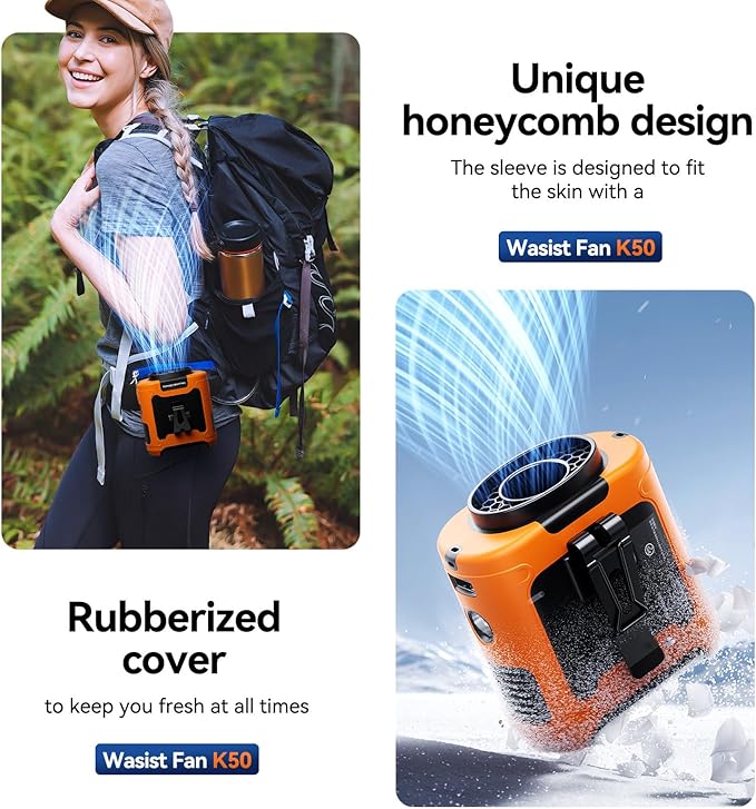 - Constructed from durable plastic and silicone materials, the shell of this waist fan ensures a secure grip and minimizes the risk of accidental falls, making it ideal for prolonged outdoor use.