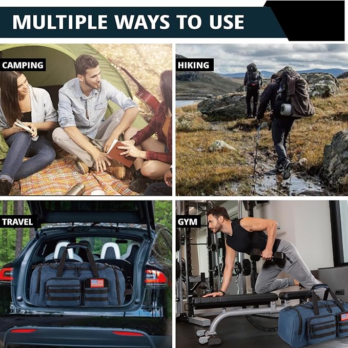 - 【Multifunctional Duffle Bag】The gym bagpack Measuring 25.6"L x 11"W x 10.7"H with a 50L capacity, this multifunctional large duffle bag is both stylish and practical. Perfect for a variety of uses, it can serve as a gym bag, travel bag, sports duffle, overnight bag, weekender, hospital bag, business travel bag, dance bag, camp duffle, airplane carry-on, university duffle, or swim bag.