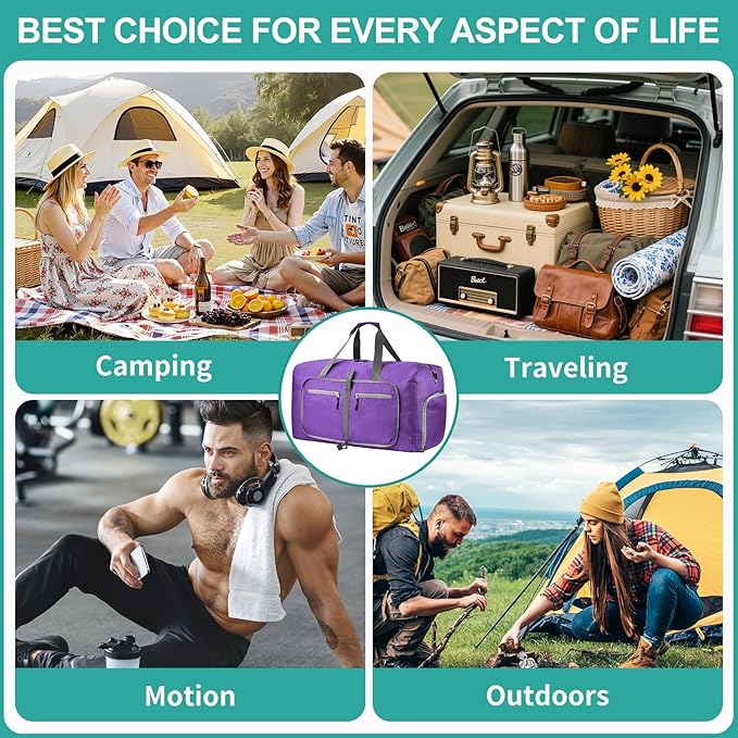 Dimayar Travel Duffle Bag for Men Women - Foldable Duffel Bag with Shoes Compartment - Overnight Bags Waterproof & Tear Resistant(115L,Purple)