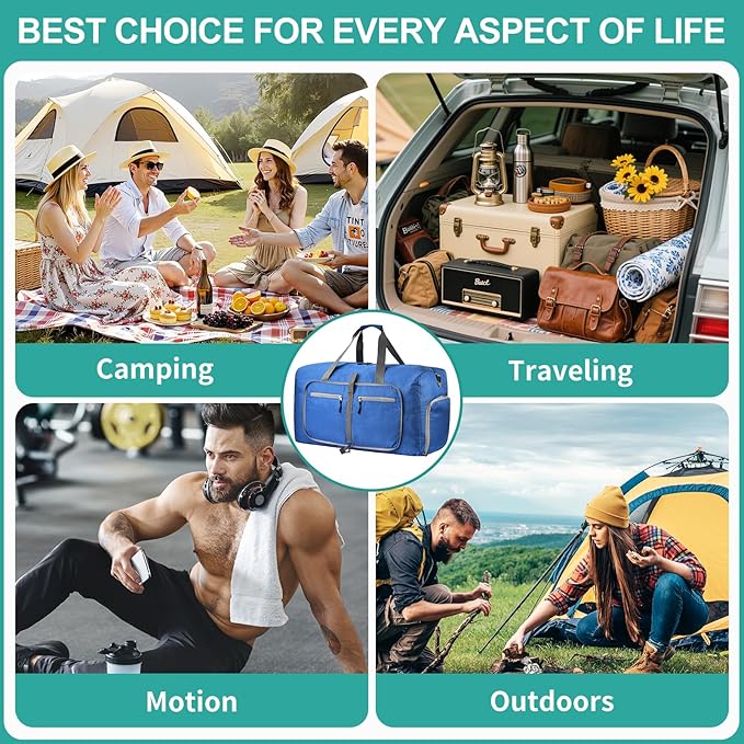 - Foldable and Spacious travel bag: The foldable duffle bag for travel can be folded into a really small size taking up so little space but opens up to have about 40L capacity of travel duffel bags to use as the luggage bag in case that your suitcase swells, this travel bag works very well when used in combination with a luggage, it's to give you an organized lightweight travel experience