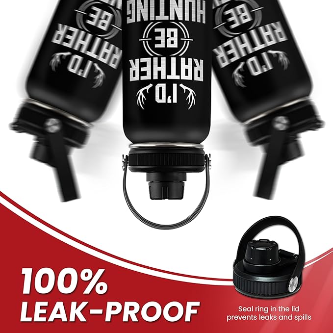 I'd Rather Be Hunting Stainless Steel Insulated Bottle - 32oz with Straw Lid - Hunting Gifts for Men, Dad, Husband, Papa; Perfect for Birthday, Christmas, Father's Day