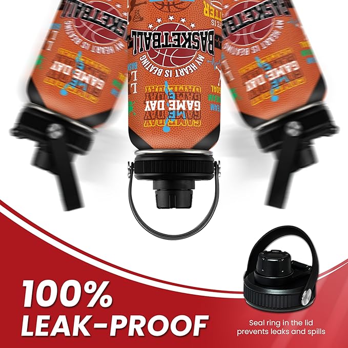 Basketball Water Bottle 32oz, Stainless Steel Insulated Sports Bottle with Lid, Basketball Gifts for Men Players Lovers Fan