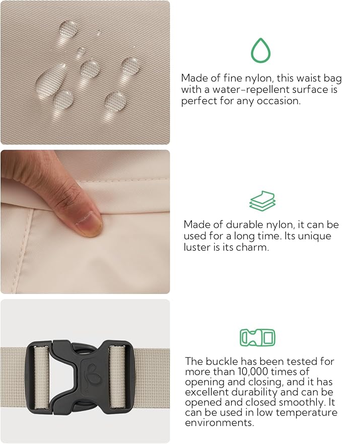 - Premium Material & Sturdy SBS Zipper: Hiking waist bag is made of high-quality nylon material, durable and breathable, fine workmanship and tight stitching. Smooth zippers ensure users to quick access to the items, preventing items from falling