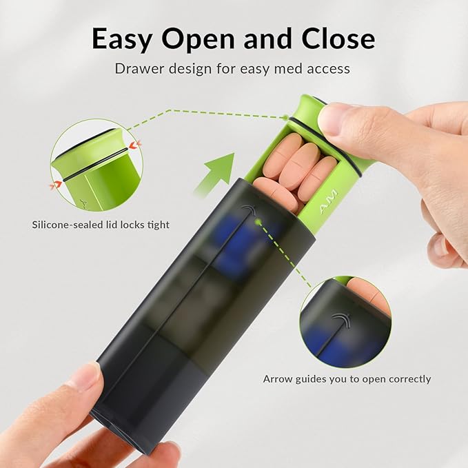 - Sealed & Leak-Proof: The pill organizer 3x a day has a rubber-sealed lid and snap-on base—pops off easy, locks tight. It's durable, so even if you flip or shake when carrying it out, it won't leak. Ideal for home, work, or travel