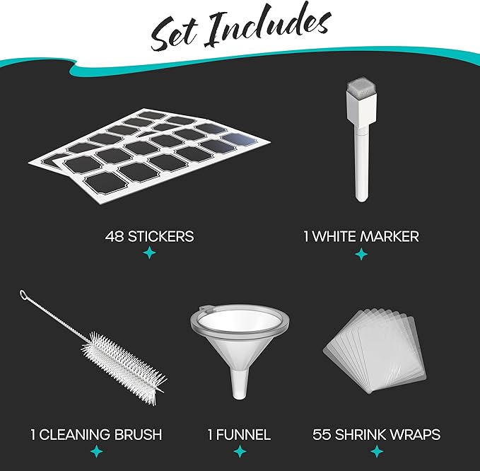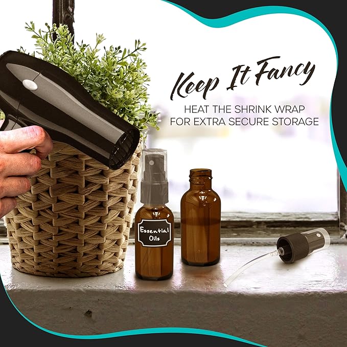 - FULL AMBER GLASS BOTTLE BUNDLE: Get a 48-pack of leakproof small glass spray bottles with pump tops for simple misting. Keep your mini glass spray bottles organized with labels, a white marker, & a brush. Refilling each amber glass spray bottle is simple with the mini funnel, while shrink wrap provides a reinforced seal. The 1oz spray bottle works great as a mist hand sanitizer spray bottle , a mini spray bottle for hair & body, or an essential oil spray bottle for gifting family & friends!