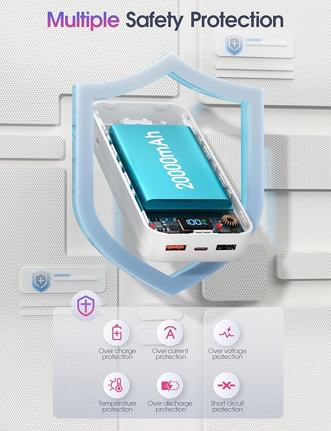 - Fast Charging Power Bank: This Portable phone charger has two USB-A and 1 USB C ports.The USB-A2 port of this portable power bank delivers up to 22.5W of ultra-fast charging, significantly boosting charging efficiency and reducing wait times. The suitable travel companion for your smart devices.