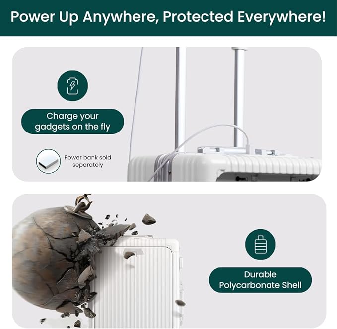 - Strong & Lightweight: Built with a reinforced aluminum frame and impact-resistant polycarbonate shell, this lightweight 9.7 lb. zipperless carry-on is ultra-durable. Dual TSA-approved locks provide extra security, keeping your belongings safe during travel.