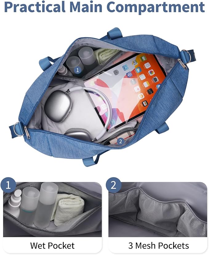 Narwey Carry on luaggage 22x14x9 Airlines Approved Foldable Carry on Bag Travel Duffel Packable Duffle with Wet Pocket Overnight for Women and Men 40L (Navy Blue)