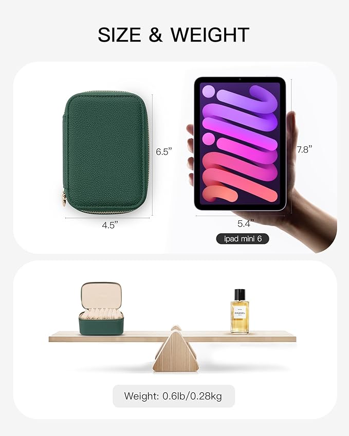 Vlando Jewelry Box with 8 Velvet Jewelry Bags Travel Jewelry Storage Box Petal Hardware Jewelry Organizer for Necklace Rings Earrings Women Gifts for Christmas Birthday-Green