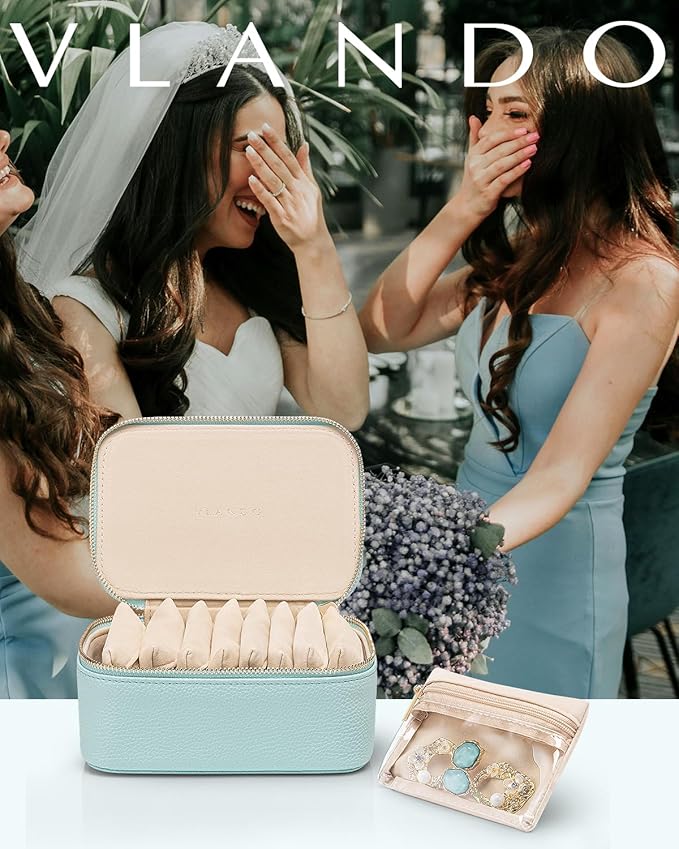 Vlando Jewelry Travel Organizer with 8 Velvet Jewelry Bags Travel Jewelry Storage Box Jewelry Case for Necklace Rings Earrings Trendy Christmas Birthday Graduate Gifts for Women-Lake Blue