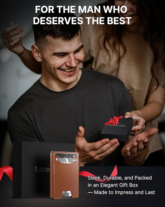 typecase Wallet for Men: Rfid-blocking with Money Clip Slim Leather Bifold ID Window Smart Pop Up Card Case Front Pocket Wallet with Gift Box (Light Brown)