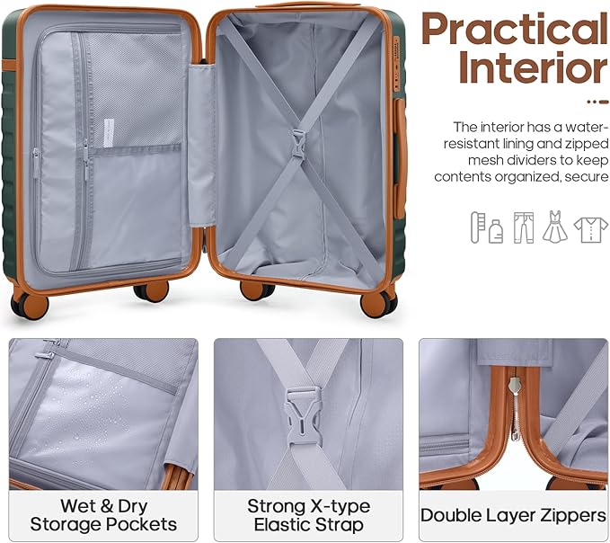 - Easy to Maneuver : Silent Dual Spinner wheels rotate 360°, providing superior maneuverability and a smooth glide in every direction. Thanks to the smooth-rolling wheels of suitcase, even when fully loaded, it's a breeze to maneuver through crowded airports and busy streets without feeling fatigued or strained.