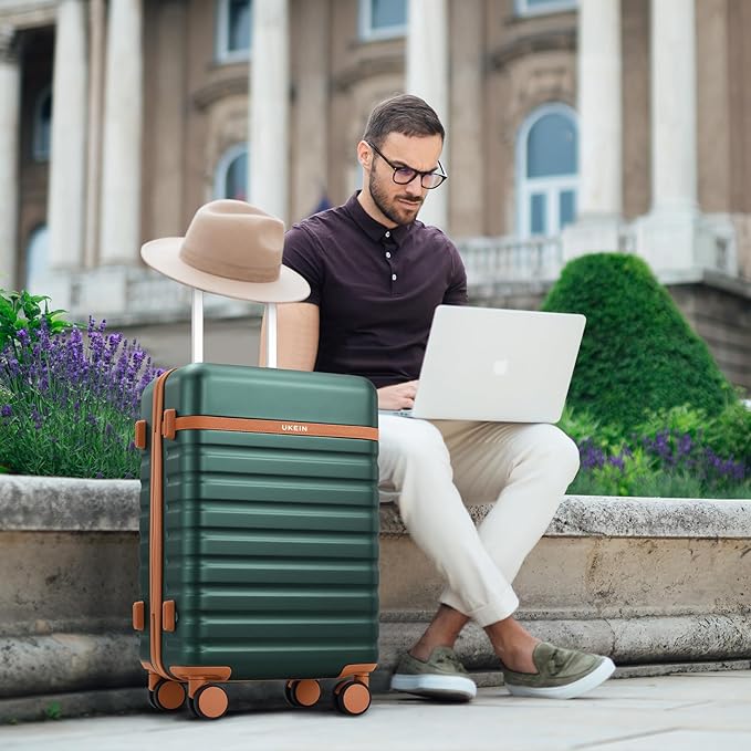 UKEIN Luggage Sets 3 Piece, Carry On Luggage 20In With Spinner Wheels,PC Hardside Suitcase Set with TSA Lock,Durable Carry On Suitcase With Travel Backpack for Men (Green, 3 piece set (20inch))