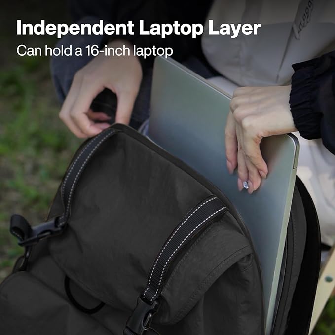 - 【LARGE CAPACITY & WELL ORGANIZED】Portable flip drawstring design allows you to pick up items quickly. The travel backpack has a spacious main compartment with a capacity of 22L, can hold clothes, books, water bottle, umbrella and other items. Independent laptop layer can fit for 16 inch laptop. Two side pockets and one magnetic front pocket can be used to organize essentials or daily necessities. Lots of pockets design make your items organized.