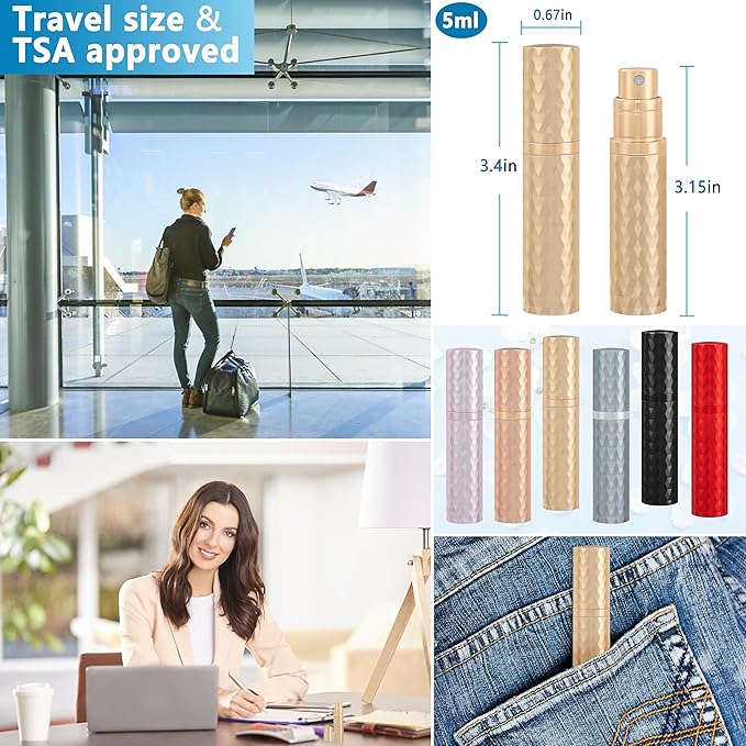 - 5ml Travel perfume atomizer - With saving perfume and perfect size, making it more suitable than the original perfume bottle to fit in your handbag or traveling. It holds enough perfume for about two weeks. Travel essentials, TSA-approved for carry-on