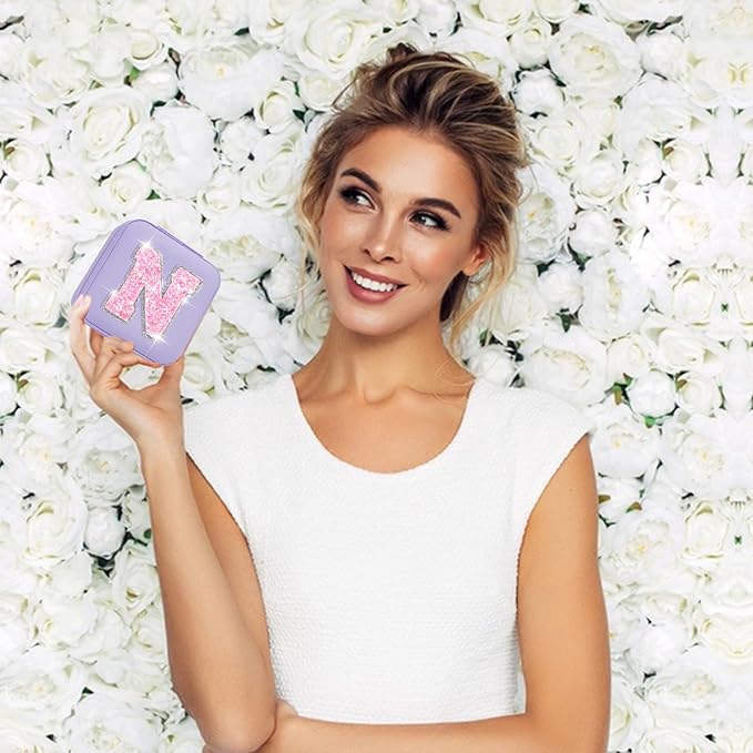 Personalized Jewelry Case for Women Girls - Fashion Mini Jewelry Boxes - Trendy Travel Jewelry Organizer with Initials Letter - Teen Gifts | Lavender,N