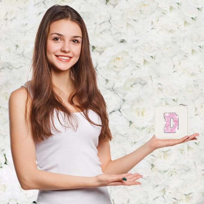 Personalized Jewelry Case for Women Girls - Fashion Mini Jewelry Boxes - Trendy Travel Jewelry Organizer with Initials Letter - Teen Gifts | Cream,D