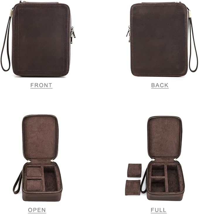 - Premium Leather: Made of Full Grain Crazy Horse leather, jewelry travel box watch travel case and glasses box is durable and has a retro luxurious look