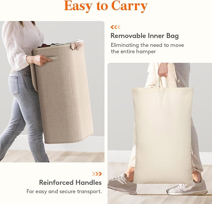 - With Lid and Removable Inner Bag: Comes with a detachable inner bag for easy trips to the laundry room, eliminating the need to move the entire hamper; the lid keeps odors and dust contained for a clean environment