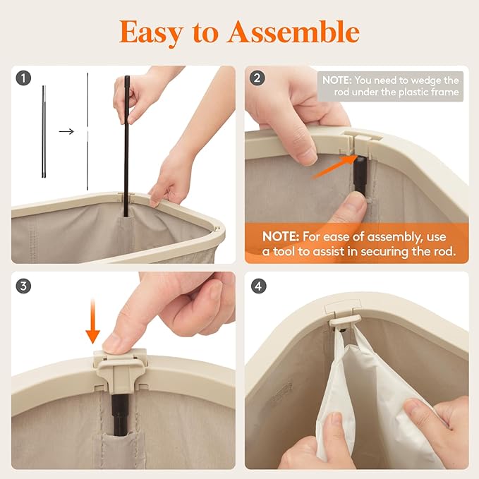 - Super Easy to Install: unfold the bag, insert the support rod, attach the hook, put on the inner bag, and you are ready to go; the upgraded slot design makes installation easier then ever. Note: For ease of assembly, use a tool to assist in securing the rod