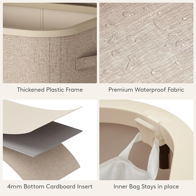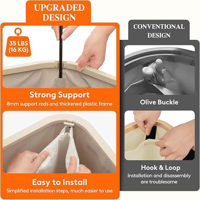 - Robust & Stable: Constructed from premium tear-resistant fabric, this dirty clothes hamper includes a plastic frame and four support rods for enhanced stability, supporting up to 16 kg/35 lbs without collapsing or deforming over time
