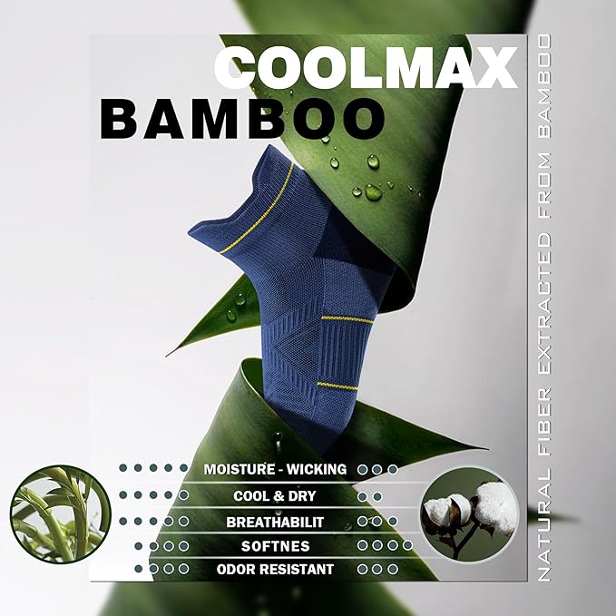 - [PREMIUM PLANTS VISCOSE & COOLMAX FIBER]: Compression socks men are made of high-tech COOLMAX and Plants viscose, which bring comfort and moisture wicking to your feet, keeping your feet dry. Good anti-odor socks can make you pleasant.These running socks are suitable for a variety of scenarios, hiking, running, sports game, workout, yard work, and wherever in the comfort of your own home.