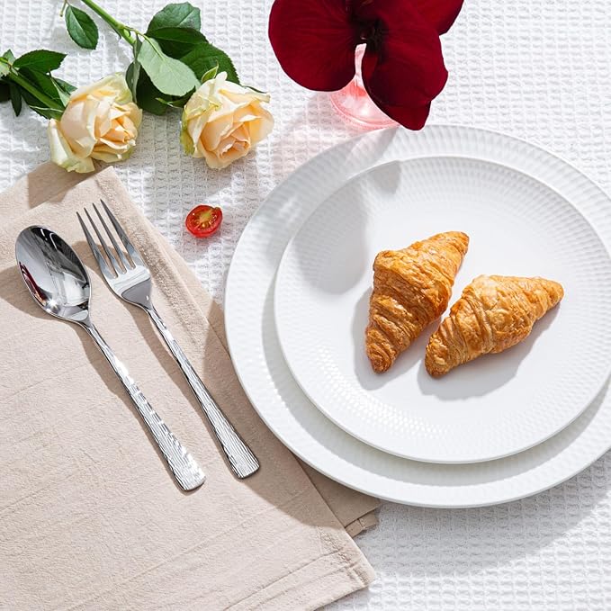 - MODERN STYLE: Each handle's unique hammered pattern complements most decorations. The curved edges, substantial thickness, and artisanal hammered finish add a touch of sophistication and elegance to your dining table, enhancing your fine dining experience.