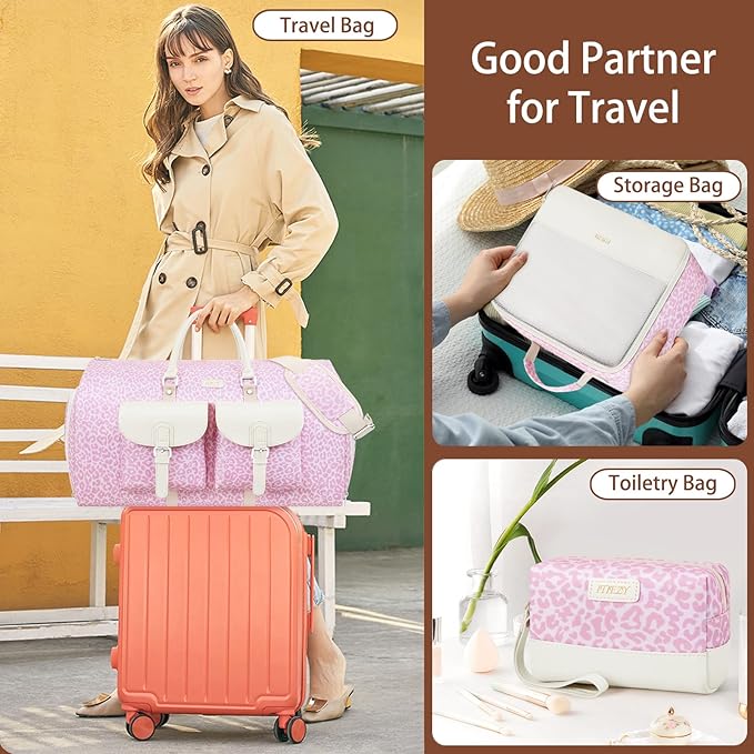 Garment Duffel Bag for Travel - ITIEZY Convertible Carry on Garment Duffel Travel Bag for Women Men Large Weekender Bag with Shoes Pouch 2 in 1 Hanging Suit Travel Duffel Bag 3pcs Set