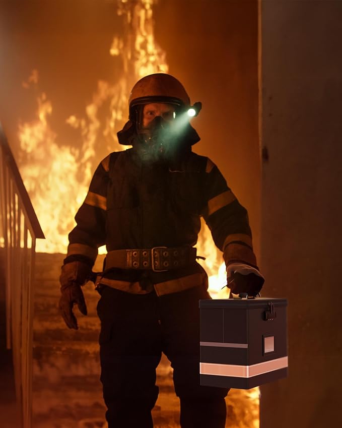 - On-the-Go Convenience & Space Efficiency: Ideal for daily use or business trips, this upgraded file box with lock fireproof is designed for emergency grab-and-go convenience. Foldable for compact storage when not in use. and stackable to save space