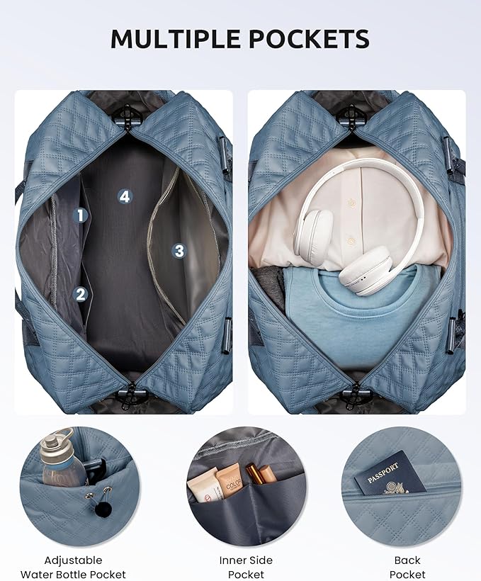 - 【Initial Weekender Bag&Cosmetic Bag】Our weekend bag stands out from the market with personalized letters, allowing you to choose the initial of your name or give it as a thoughtful gift to others. Our initial travel bag comes with a cosmetic bag for storing your makeup/toiletries.