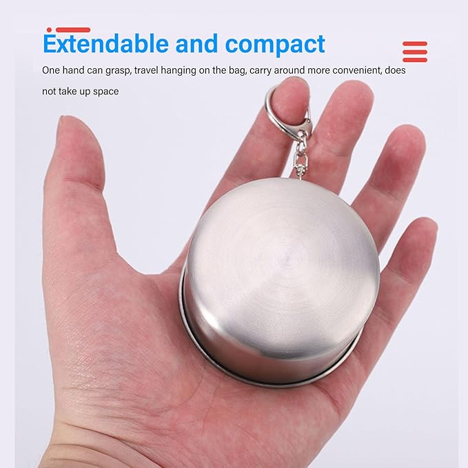 Outdoor Travel Collapsible Cup, Stainless Steel Folding Camping Cup, Portable Drinking Mug With Keychain for Hiking and Picnic (450ML)