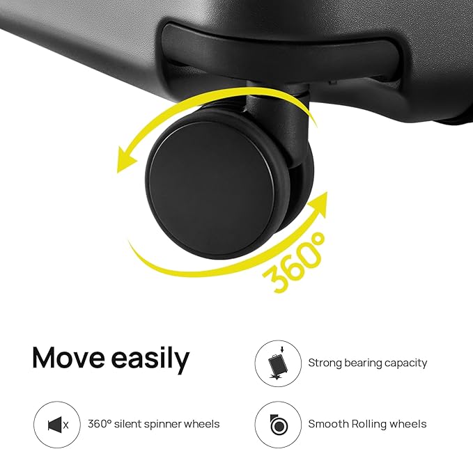 - 【Effortless Mobility System】Features 4 durable double spinner wheels for 360° effortless maneuverability, paired with a sturdy aluminum telescopic handle offering 4 adjustable height positions for comfortable pulling.