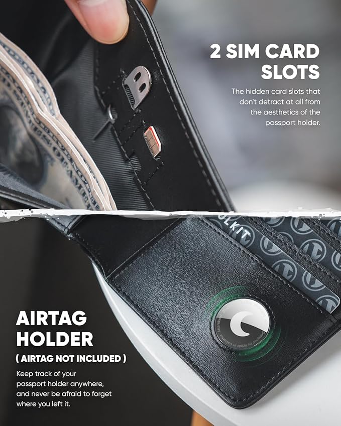 - Passport & Airtag Holder Combo Design- The built-in holder compatible with airtag to locate your passport while travelling. Keep track of your passport book cover wherever you go and never worry about forgetting where you left it.