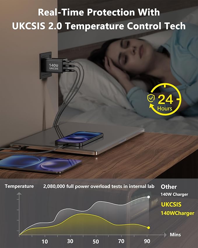 - What You Get:1 x UKCSIS 140W USB C Charger, 1 x 100W USB C Charging Cable with E-Marker for fast charging, and 1 User Manual. Trusted by over 50,000 users, the UKCSIS charging station is not only a practical solution but also a great gift for family, friends, and colleagues. Plus, enjoy peace of mind with our 24/7 friendly customer service.