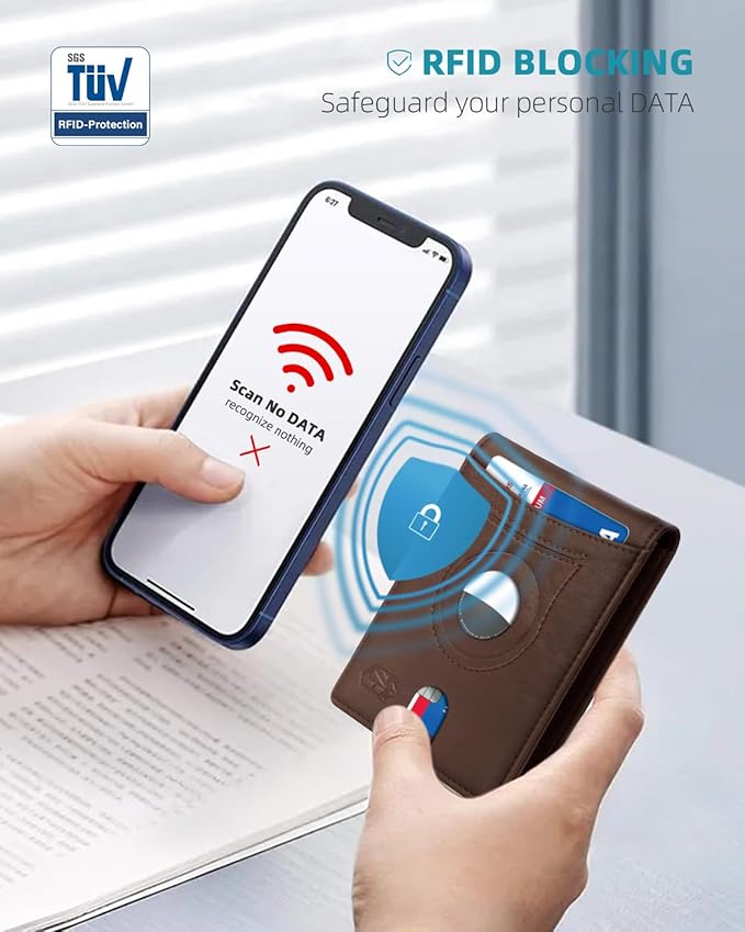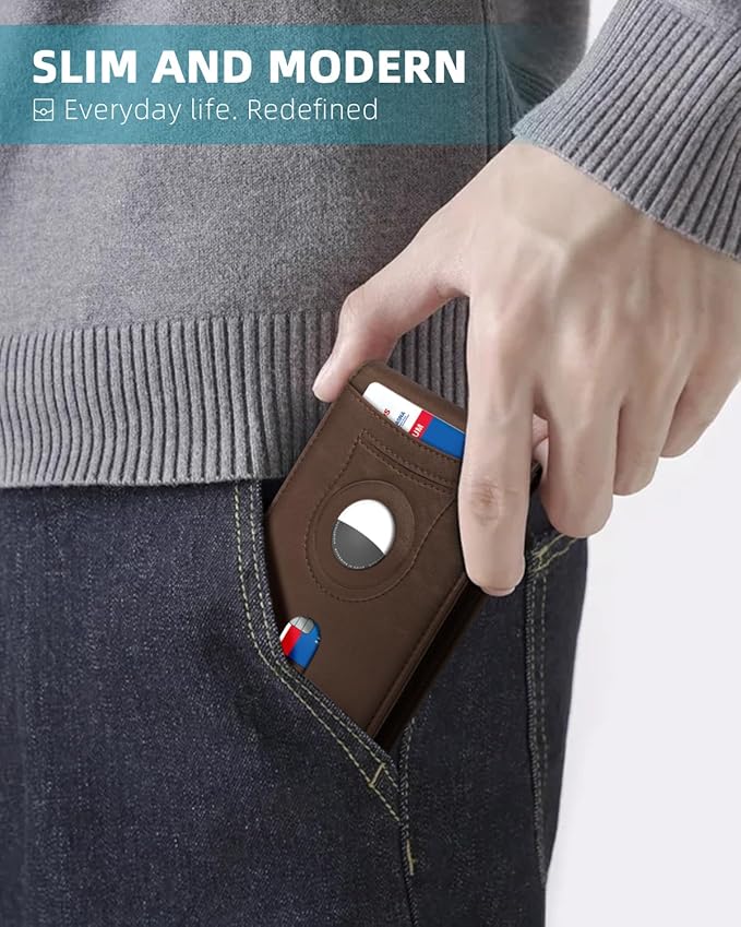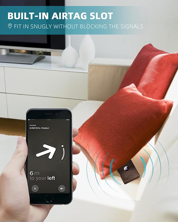 • Designed for AirTag - The AirTag Wallet Men features a built-in secure pocket holder that keeps your AirTag in place. Its easy-to-use design also provides excellent signal strength, ensuring you never lose your leather wallet again