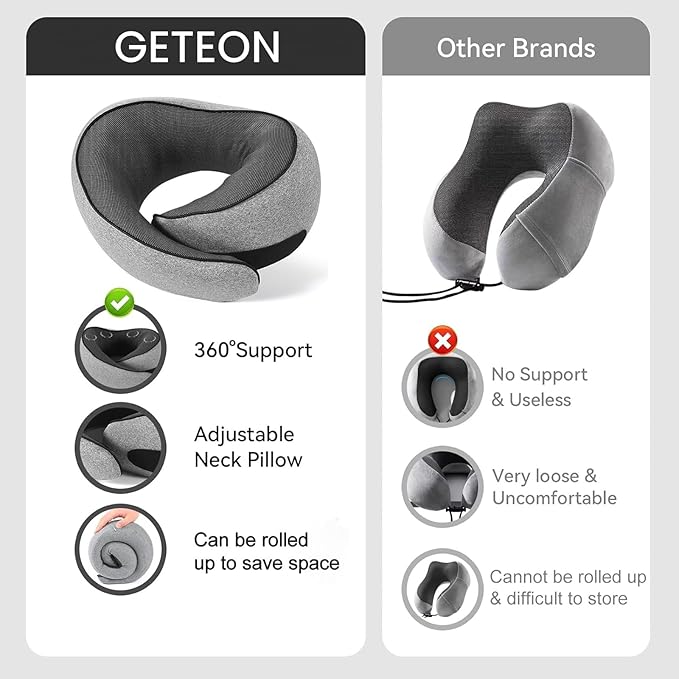 Travel Neck Pillows for Airplanes, 360° Head Support Sleep for Long Flight, Skin-Friendly & Breathable, Kit with 3D Contoured Eye Mask and Earplugs, 100% Pure Memory Foam Full Neck Surround Pillows