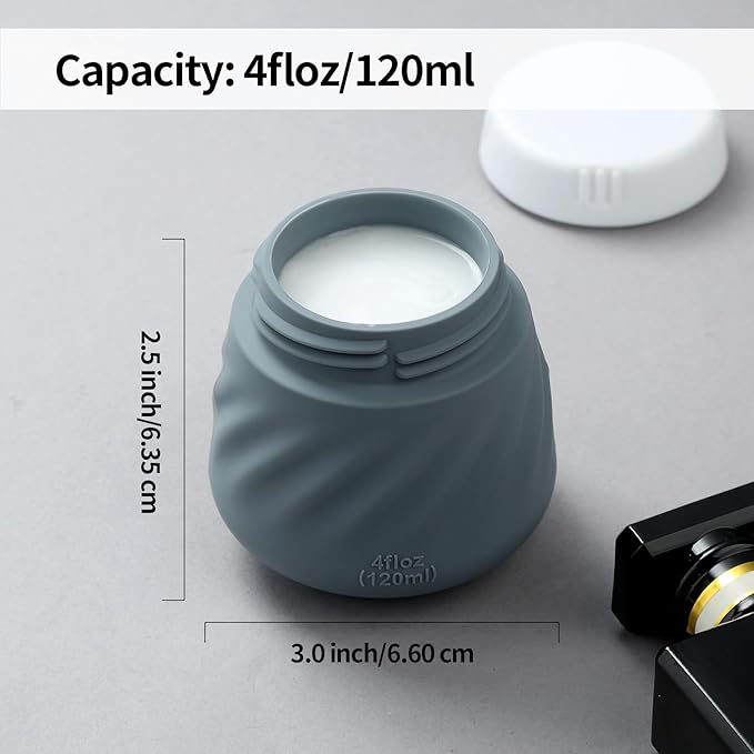 Gemice 4 OZ Travel Size Containers for Toiletries, 4-Pack Leak-Proof Silicone Slime Jars with Lids, BPA Free Small Round Cosmetic Slime Container for Lotion, Cream, Ointments, Travel Essentials