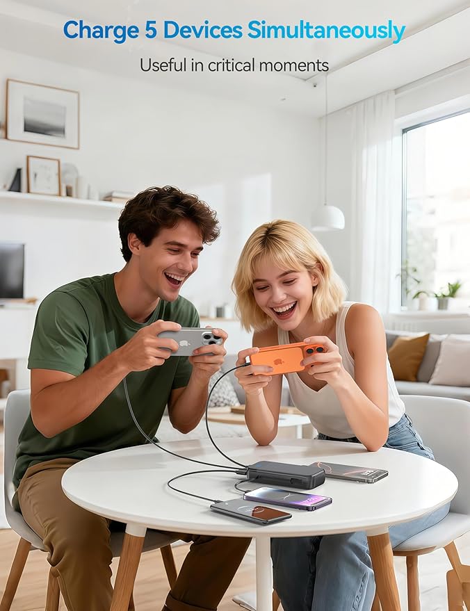- ๐ใ๐๐จ๐ฐ๐๐ซ ๐๐ฉ ๐ญ๐จ ๐ ๐๐๐ฏ๐ข๐๐๐ฌ ๐๐ญ ๐๐ง๐๐ใLENGSUM battery pack charger portable keeps everyone topped up. With 5 total outputs (including the 2 integrated cables), you can charge up to 5 devices at once. When it's time to refill, choose what's handy: 3 inputs (iOS, USB-C, or Micro-USB) make recharging flexible and convenient