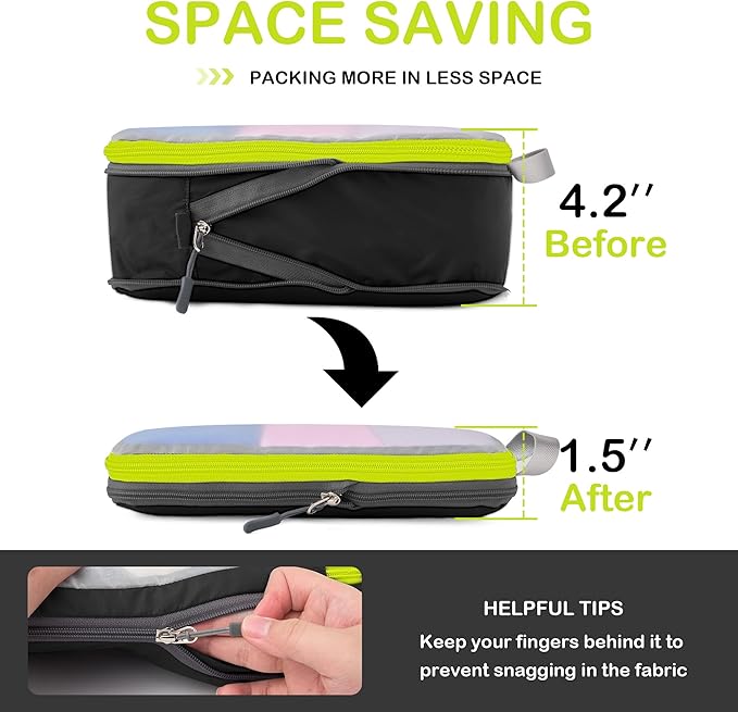- Space Saving and Travel Light: Cipway compression packing cubes travel design with extra compress zipper to help you packaging your clothes by squeeze the air out of them, you can save more precious space in a carry-on luggage or checked bag, it‘s excellent space-savers to pack more items on your trip