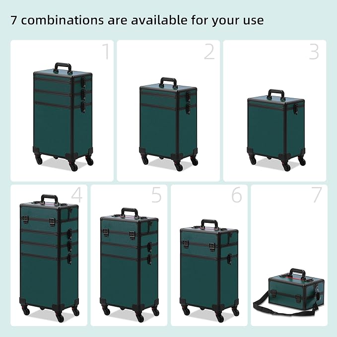 - 【Bonus Lid for Added Convenience:】The rolling makeup case is included a bonus lid that allows you to transform the portable makeup box into a standalone first layer. This means you have 7 different storage layer combinations at your fingertips, providing the ultimate versatility and organization for your beauty essentials.
