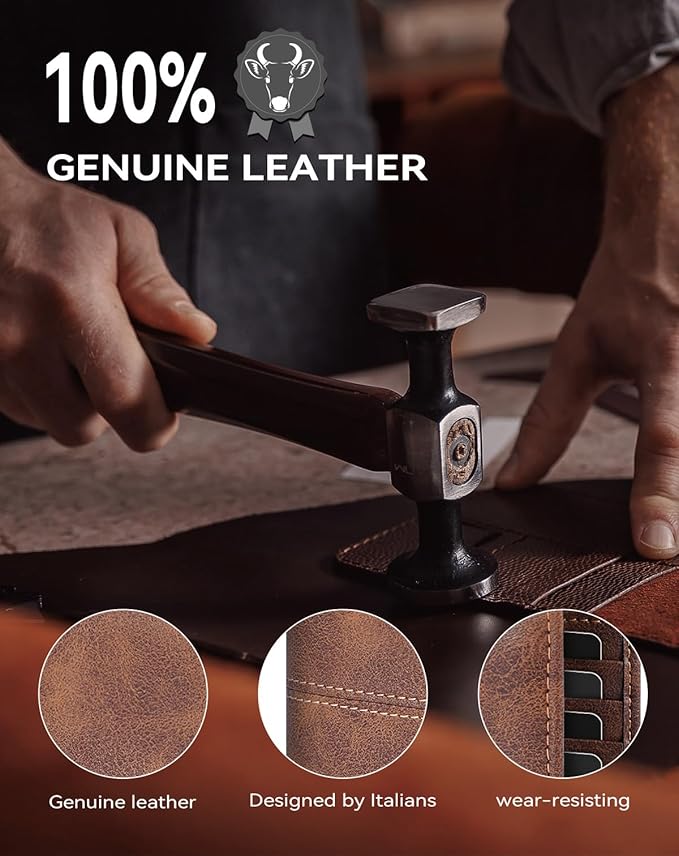 - Genuine Leather: Crafted from premium cowhide leather, our wallet is soft and smooth to touch. The exquisite stitching process and design give it a sophisticated look. Whether you're holding it in your hands or slipping it into your pocket, it feels comfortable natural without any bulk or discomfort