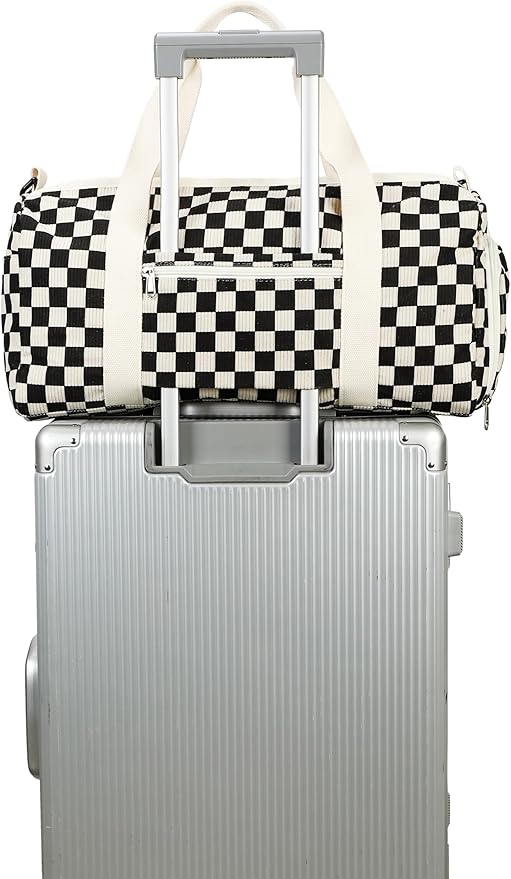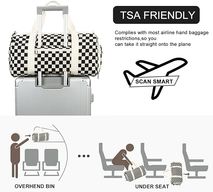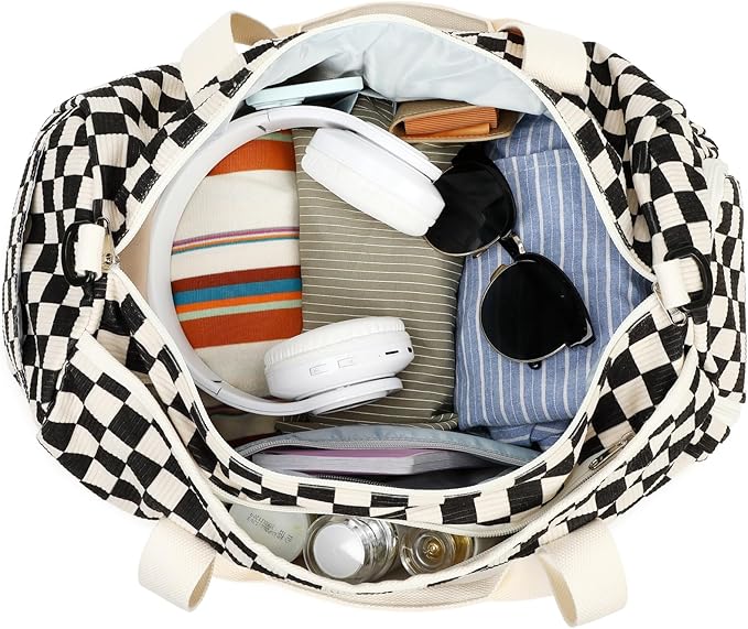- The spacious main compartment of the cute girl weekend bag can accommodate sports jackets, pants, shirts, hats and thermos cups. The zippered sacks in the main compartment can hold important small items such as cards