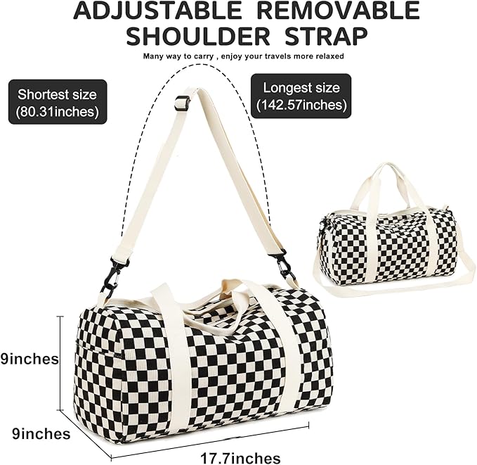 - Adjustable and detachable shoulder straps, metal hooks and plastic shoulder straps ensure a fit and non-slip. Padded and wrapped in the handle for more comfort. Very suitable as dance ,gym, swimming, boys duffle bag, travel, weekend, boys overnight bag, yoga, camping, hiking and many outdoor activities or as gifts for women.