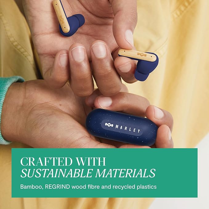 House of Marley Little Bird True Wireless Earbuds, Touch Controls, Built-in Mic, 24 Hours Playtime with Case, USB-C Quick Charge, Sustainable Materials, Movie and Gaming Mode (Blue)
